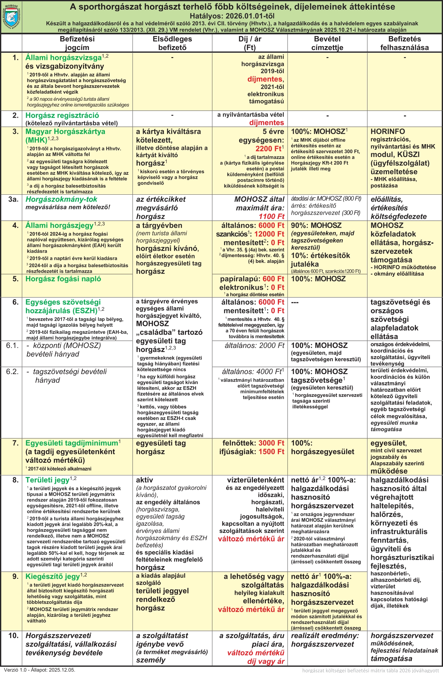 A SPORTHORGÁSZAT HORGÁSZT TERHELŐ FŐBB KÖLTSÉGEINEK, DÍJELEMEINEK ÁTTEKINTŐJE